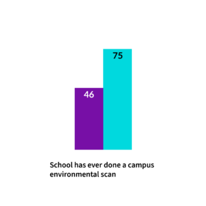 Each school develops a strategic plan as part of its work with JED Campus. The strategic plan includes recommendations from JED’s Comprehensive Approach to Mental Health Promotion and Suicide Prevention for Colleges and Universities. Students at schools that implement an increasing number of recommendations are more likely to demonstrate:
