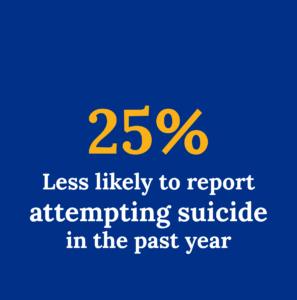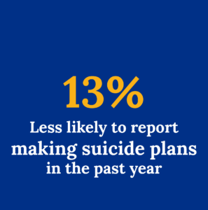 - Even lower rates of suicidal ideation, suicide planning, and suicide attempts than schools that had lower levels of progress.