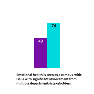 Each school develops a strategic plan as part of its work with JED Campus. The strategic plan includes recommendations from JED’s Comprehensive Approach to Mental Health Promotion and Suicide Prevention for Colleges and Universities. Students at schools that implement an increasing number of recommendations are more likely to demonstrate: