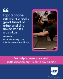 Learn the signs nowIf you’re scared to say the word suicide—either because you’re thinking about it, you’re worried someone you know might be considering it, or, you just don’t know how to talk about it—we want you to know it’s OK to say it.